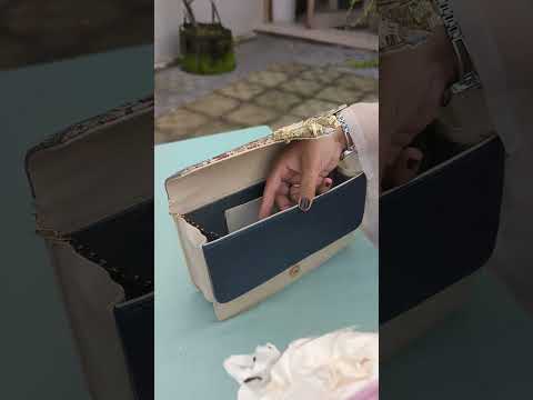 This shoulder bag features a floral tapestry-style design in shades of red, green, and gold, complemented by navy blue and cream leather accents. The gold buckle in the center adds a sophisticated touch to the detailed craftsmanship, creating an elegant and timeless accessory.